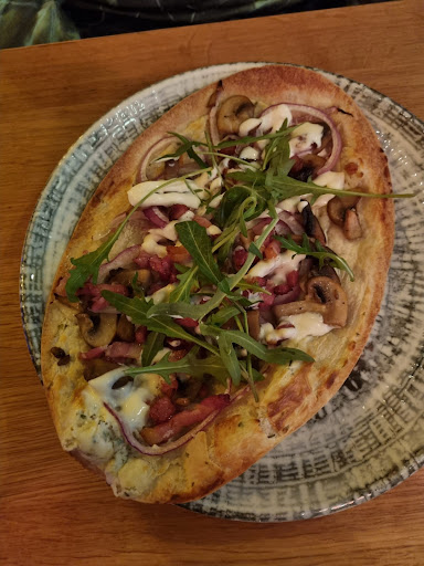 Ate here on two occassions. First time i sat a table and chair inside. The chair was unbearable, it actually gave me back pain during the meal and had to slouch during the entire 3 course meal as it was beyond painfainful. I rested my legs on the leg of the table, and then everything feel off the table. DO NOT sit on the black chairs inside without a cushion. One waiteress gave me my drink without even saying a word. Other staff were friendly and asked if everything was okay. Food was fast this time.