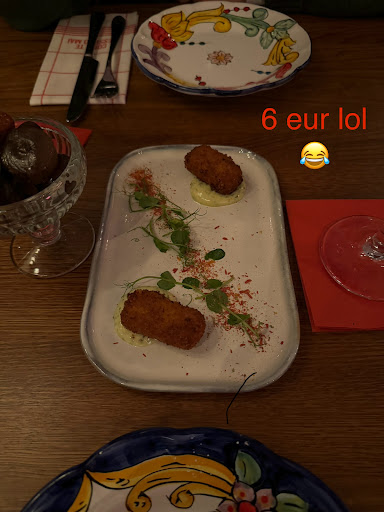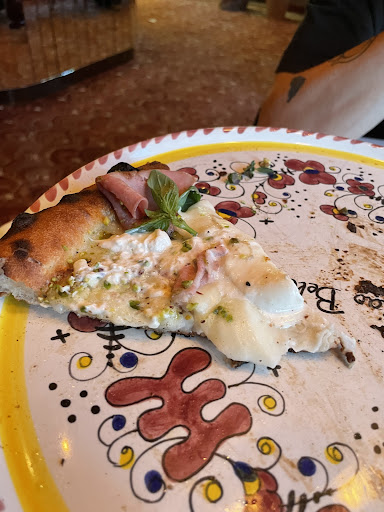 Ordered two starters (risotto croquettes and coppa) nice portion of AH coppa and just three very small croquettes. The pizza (mortadella, pistachio and burrata) looks good, but it has no taste and the dough is raw in the crust, so it’s very heavy.