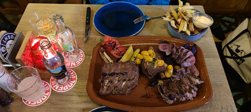 Kwaliteit van het eten wisselend. Voorgerecht pannetje buikspek was smaakvol. Ribeye hoofdgerecht was echter erg ondermaats. Kwaliteit van het vlees zeer matig, veel zeen, taaie stukken en pezen die nog weggesneden moesten worden. Friet en nagerechten prima. Smerige, festivalachtige toiletten in een apart gebouw.