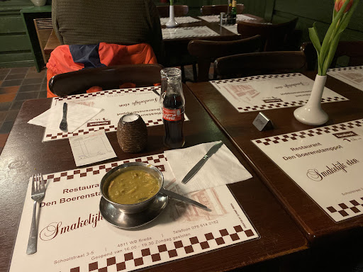 This is the real deal. The real Dutch food place you should go to as a tourist. I came here based on my Dutch friend recommendation. Came in, almost no one speaks English, first sign of authenticity :) then the menu is like a little chalk board on the wall, all in Dutch with no translation. Second sign of authenticity. Then most patrons seem like locals. I stood out as the only Asian in this place lmao. But I had a good time. The waitress was very helpful. I basically asked her to make me a 3 course meal since I had no clue what to order. So I had a pea soup, a stamppot and a vla. The soup and stamppot was very very good. My friend was like this is what his mom used to make for him every week. I ordered two meatballs on my stamppot and finished them all. Yummy. The only thing you need to know is this place is cash only. So I had to run back to the hotel to get some money, and I can only pay in US dollars since I didn’t exchange any money lol. I really appreciated the trust they had in me. I gave them a nice tip for the trust but based on the lady’s expression they weren’t expecting the tip. Nice people nice food...