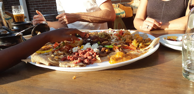 Verrassend etentje voor mijn verjaardag. Bij binnenkomst was mijn eerste gedachten. Kunnen we gewoon niet naar de Griek gaan of zo? Totaal geshockeerd zat ik daar in een kring met zo'n vreemde mand voor mijn neus. Menukaart gelezen en ik had iets van mijn god wat moet ik hiermee. Uiteindelijk gekozen dat we een mix van vlees en vegetarische namen. Het eten werd mooi geserveerd in schaaltjes. Omgekeerd en op pannenkoeken gelegd. Het eten was zeker niet verkeerd. En de bediening was heel netjes. Handen werden voor het eten gewassen. Uiteindelijk prima vermaakt en lekker gegeten. Wel een hele...
