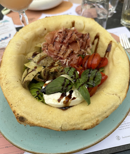 Lovely place with great ambiance. We sat outside in the back of the restaurant. The starters are just too good, they could have been the main course if you are talking about the taste. The pizza's are of a good size and taste real good. The spaghetti, one of our table mates had was too little. The tiramisu on the counterpart was huge and full of perfect taste. Parking is a hell. All in all nice and lovely place that doesn't cost...