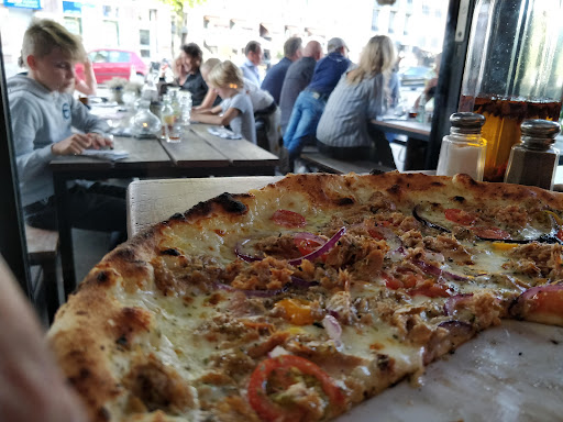 Read moreHeel leuk een Vegan pizza op het menu. Maar wat een enorme teleurstelling. Dit was pure vulling ipv lekkere voeding. We kregen een pizza met enorm dikke plakken praktisch rauwe courgette en paprika. Niks geen gemarineerde en/of verfijnde smaken, geen leuke creatieve wending van gefrituurde kappertjes of op zijn minst wat gezelligs met artisjok. Echt heel teleurstellend. De kaas pizza’s zagen er heerlijk uit en ik begrijp, we denken bij pizza aan kaas, maar als Vegan chef weet ik dat het zonder ook echt minstens net zo lekker kan en simpel kan. Maar niet zo. Vroeger haalde ik nog weleens kaasloze pizza’s in Pazzi Amsterdam en alhoewel ook weinig creatief, wel altijd lekker puur en smaakvol . Als je dan een simpele pizza zonder kaas Vegan noemt, gooi er dan geen veel te dikke plakken op. Top het af met tros tomaatjes die lekker karamelliseren,...