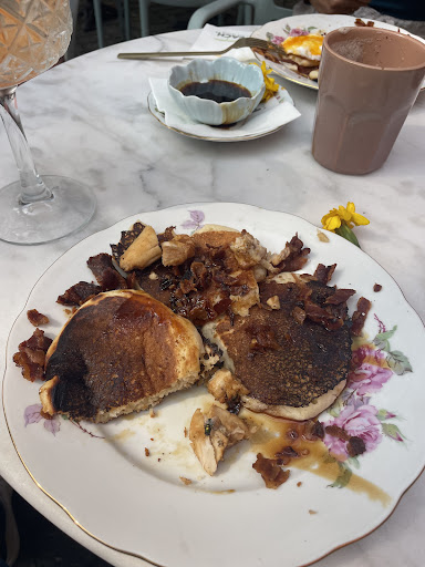 So... What a disapointment... We ate at the terrace. The place looks cute on picture but it was very dirty, view on the trashcan, cigarettes on the floor, the table were not cleared so there was a lot of bees and ants. The drinks were ok/good so one good point for them. After that, the food we ordered took at least one hour to arrive (for pancakes and Benedict eggs). The pancakes were burned, the eggs were overcooked, the sauce was separated, the portion were not generous at all. We left without eating the half of it (and I really don't like food waste). Other good point, when we told them : they accept to take off the food of the bill. Yay... (I think maybe they knew something was wrong with the...