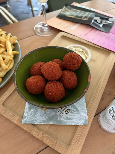 The loaded fries are ok, but the pizza is alwful, and the cocktail are a hit or miss The pizza (Mediterrenean) was so bland, there was no salt, no seasoning, so you really just taste plain tomato sauce. You pay €15 for it, it's a disgrace. The (Italian Fries) were nice and the (Frietje Suikerkist) were basically just plain fries, but they were fine. However, for 8 euros, I would expect slightly bigger portions. The cocktail (Watermelon Sugar High) was a huge letdown, you don't taste any alcohol and it was like drinking slightly diluted lemonade. The (You Name It) was a better cocktail. The sever was really nice and accommodating, and at the beginning the service was fast but as the night went on, the wait for drinks and snacks...