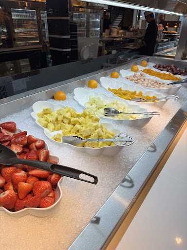 Read moreDe kwaliteit en smaak van alle gerechten is top. Ook de keuze is enorm. We hebben al bij veel restaurants met dit concept gegeten, maar het Wereldrestaurant steekt qua kwaliteit en keuzemogelijkheden toch wel boven alles uit. Daarom 5 sterren voor het eten. Vanwege onze kinderen hadden wij om 16:30 een tafel gereserveerd voor 2,5 uur. Resevereren is hier echt noodzakelijk want het is erg druk. Voor de deur stond een behoorlijke wachtrij, dus het duurde een kwartier om binnen te komen. Ook in het restaurant zelf was het nog vijf minuten wachten voordat we naar onze tafel werden begeleid. Het restaurant is modern ingericht, maar ieder beschikbaar plekje is volgepropt met tafels en stoelen om maar zoveel mogelijk mensen te kunnen huisvesten. Daardoor is er niet veel ruimte tussen de tafels en is het in het hele restaurant dringen geblazen. Ook aan de bufetten daardoor langere wachtrijen. We waren daarom blij 2,5 uur gereserveerd te hebben, want 2 uur tijd zou echt haastwerk geworden zijn. Ik sluit me daarom aan bij eerdere reviews dat je echt tegen deze drukte moet kunnen. De drukte in dit restaurant hebben wij als veel intenser ervaren dan in andere all-you-can-eat restaurants. Je moet naar dit restaurant zeker niet gaan voor de sfeer. Die laat zich misschien nog het beste vergelijken met een ontbijtzaal in een gemiddeld hotel. Vanwege de drukte hadden wij ook twijfels bij de brandveiligheid. We hadden het gevoel dat als er iets zou gebeuren we als ratten in de val zouden zitten. Ook het aantal toiletten is niet toereikend voor zoveel gasten. Toiletten waren daardoor ook ronduit vies. Kortom: ga je puur voor het eten is dit een perfecte plek, maar ben voorbereid op een drukte die je zelfs in de Efteling op een drukke dag nog niet...