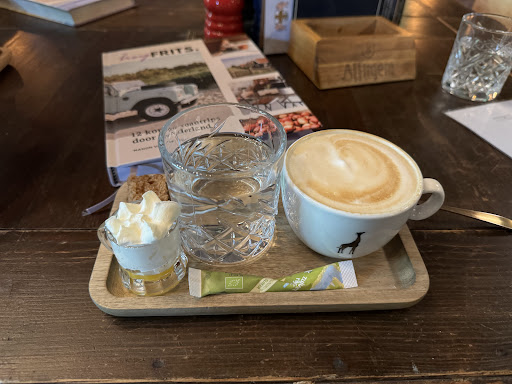 Read moreYou can buy 12euro ticket to visit the castle here in this restaurant. We ordered "Big" cappuccino and got Lovely beverage that goes together with the coffee and a slice of cake. Secluded location inside the forest of the Vorden castle. There was a very nice warm from the oven apple pie as well. The prices are cheap. We will...
