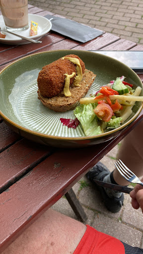 Op de menukaart stond"Brood op plank" "Overheerlijk breekbrood met ui en kaas en huisgemaakte smeersels" dat deed ons watertanden dus we bestelden na een lange fietstocht, (de route loopt pal langs hun terras)... even later kwamen ze ons melden dat er normaal 6 bolletjes breekbrood geserveerd werden maar dat ze er nog maar 4 hadden en of ze het mochten aanvullen met getoast brood. We gingen akkoord... maar wat we kregen tart alle verbeelding. We kregen wat smaakloos wit getoast brood... zonder kaas/ui en met sauzen uit POT... mangosaus, mayonaise en aioli waren NIET vers gemaakt... toen ik het ging melden zeiden ze "de aioli is vers huisgemaakt"... wat niet waar was. Ook het brood dat we kregen was niet te eten zo droog/smaakloos. GEEN breekbrood te bespeuren, ik melde dat we zeer teleurgesteld waren. Er werd niet geluisterd we hebben volle pot moeten betalen 9€ zonder excuses en voor iets wat niet te eten was, we hebben het dan ook helemaal laten liggen!!! Erg teleurgesteld. Ik heb een foto gemaakt van deze schotel maar vind helaas niet hoe ik hem...