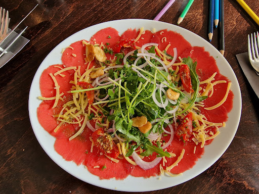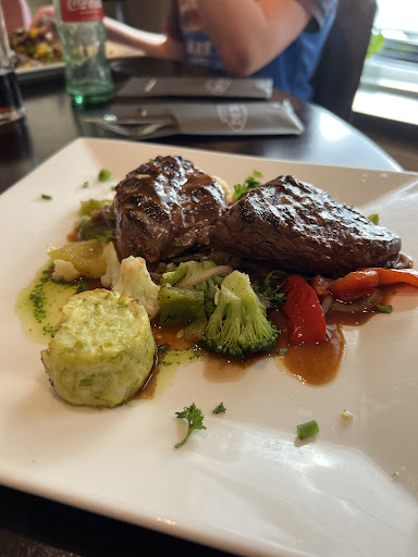 Read moreVan tevoren een tafel gereserveerd. Het hoofdgerecht was niks op aan te merken. Mooi stuk vlees en goed bereid. Echter, het voorgerecht( brood met smeersels) was heel karig. Met drie personen kregen we net zo veel smeersel als voor 1 persoon Verder ligt het restaurant aan een drukke weg waar veel patsers overheen rijden die even hun motorgeluid moeten laten horen. Om over de bijkomende benzine dampen maar niet te spreken Ook hadden de dames het heel druk zodat je lang moest wachten om je bestelling te kunnen plaatsen. Sommige mensen zaten wel 20 minuten op een kaart te wachten om een toetje te bestellen. Daarom besloten wij om maar bij de buren een ijsje te halen. Scheelt ook weer wat centen, want ze zijn ook niet...