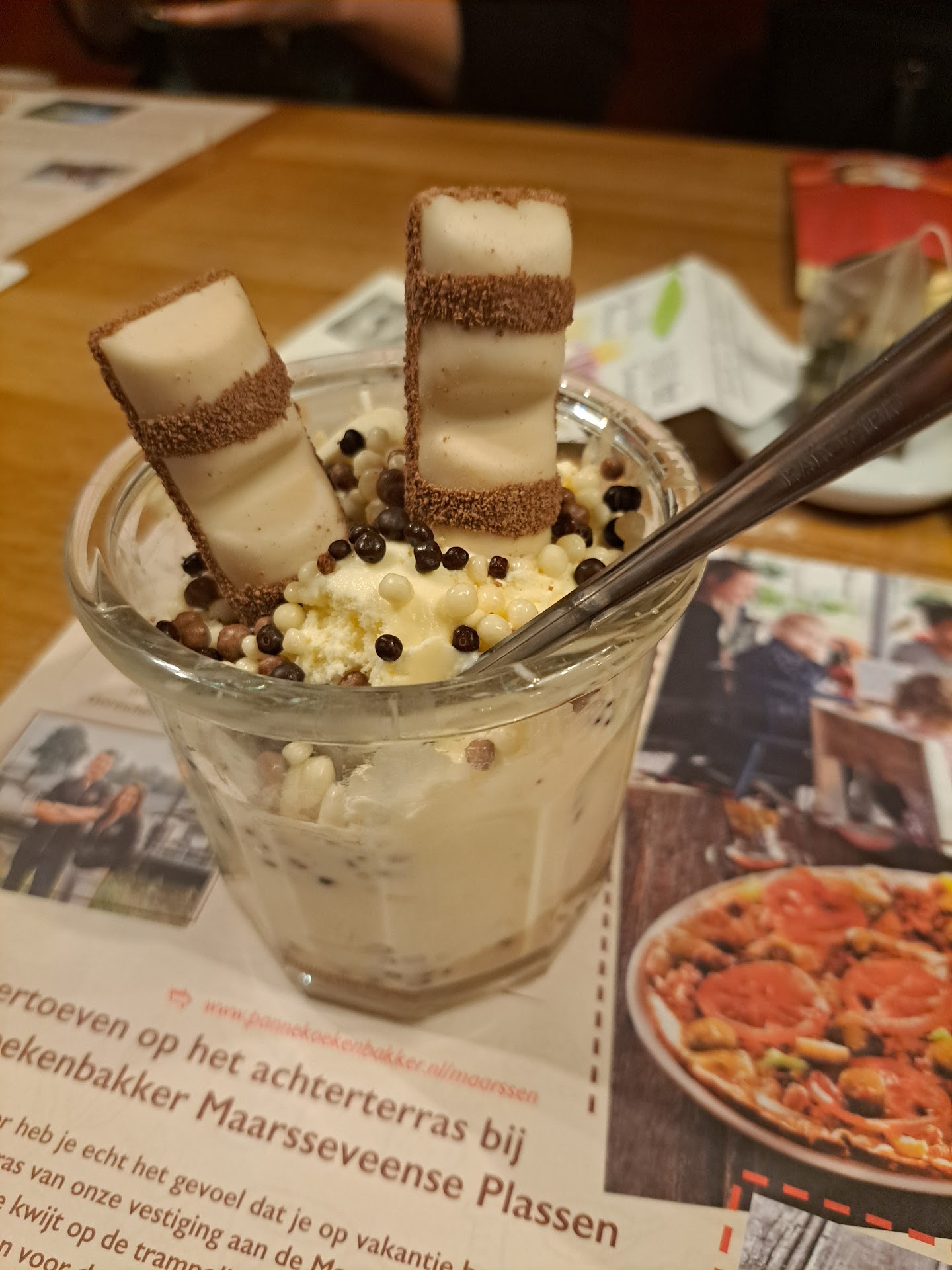 Quite nice atmosphere and a very traditional place to taste de pannekoek. They have got a quite different type of pannekoek for all the tastes. The menu includes soups, etc...Perfect to have a chill evening. The pannekoek I had, with speck en kaas (speck and cheese), was well cooked, crunchy and very tasteful. Quality/price very good. Another genial thing they have are the coins for kids. So if the kids order their kids menu, they can get coins. With these coins they can for example purchase a toy in the shop they have. You can accumulate them if you go multiple times too. Foe sure a restaurant to visit if you step by this place....