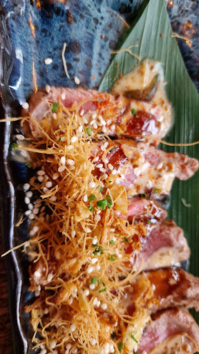 We hadden een fles water besteld en dit kwam pas na een half uur nadat we het hadden gevraagd tussendoor en we kregen wel daartussen waterglazen maar niet de waterfles wat best apart is. We hadden toen besteld en de sushi was heerlijk daar is niks op aan te merken! Toen werd het hoofdgerecht geserveerd maar we hadden geen frietjes gekregen die we nog tussendoor hadden besteld voordat het hoofdgerecht werd meegevraagd. Uiteindelijk na vragen aan de bediening kregen we onze frietjes eigenlijk pas nadat we ons hoofdgerecht al hadden opgegeten, en we zouden een grote portie zoete aardappel friet krijgen maar dit was een kleine portie. We kregen ter compensatie wel een portie normale friet, dus dat was opzich prima.