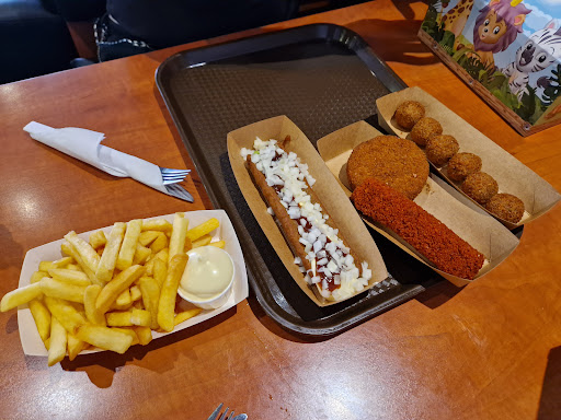 Read moreBeetje gek als je buiten op t terras zit en personeel wel langs loopt maar geen bestellingen op neemt. Broodje hamburger speciaal is met mayo curry en rauwe uitjes... beetje jammer broodje hamburger is dus droge brood met hamburger.. voor de rest eten prima van smaak. Maar aub serveer een broodje hamburger speciaal zoals t hoort met een beetje (rauwkost) salade gebakken ei, ui en champignons. Positieve noot; je krijgt hier "normaal" bestek dus geen ellende met houten...