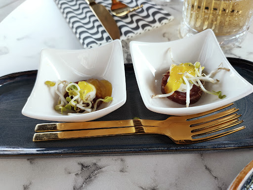 Read moreChaos, leek wel alsof ze voor t eerst open waren. Personeel niet op elkaar ingespeeld. Uur wachten voor een voorgerechtje. De serveerster deed haar best maar bij elke tafel was ze excuses aan het maken, terwijl het restaurant maar voor de helft vol zat. Bij de 1 geen bestek, bij de ander doorbakken snitzel, en ander stel kreeg pas na een kwartier bij binnenkomst iemand te zien voor een drankje, lange wachttijden. Eten was het geld niet waard. Voorgerecht prima, hoofdgerecht matig. Thuis maak ik mn zalm lekkerder en de tournedos was niet de 35 euro waard. Na de laatste hap snel weggegaan daar. Interieur prima, beetje donker maar wel oke. Of mijn verwachtingen waren te hoog of dit restaurant had een collectieve off-day, hoe dan ook ik kom er...