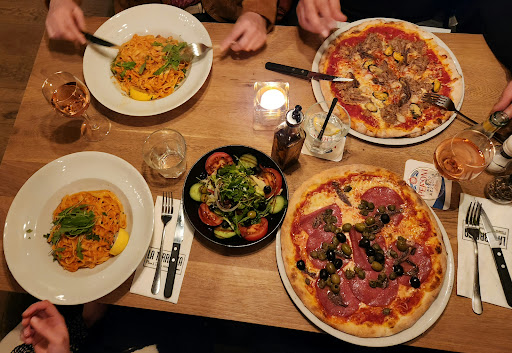 Read moreMooie locatie op het plein in Bilthoven. Sfeervol ingedeeld van de stoelen, krukken en sofa's, Keuzes uit hoge of lage tafels. We moesten wel lang wachten op het voorgerecht. Nadat we navraag deden, blijkt er een grote groep bedient moest worden waardoor we langer moesten wachten. Wij kozen voor een 2persoons voorgerecht met gekruid brood. Een goede keuze want we waren voldaan nadat de platter op was. Ondanks dat we met vier personen zijn. Sorry vergeten een foto te maken van de platter. De opmaak was beautiful. Na een paar lekkere bockbiertjes kregen we het hoofdgerecht. 2x pasta en 2x pizza (zeevruchten en een ansjovis met extra topping). Niet te vergeten een heerlijke salade. De geserveerde tafel oliëen zijn zeker de moeite waard om te proeven. De gerechten zijn smaakvol en je proeft wat je eet. Zoals je misschien weet heb ik ervaring ermee dat dit niet vanzelfsprekend is (eyewink). De pizza's hebben een dunnere bodem dan wat ik eerder had gegeten (gelukkig niet zo dun als een Turkse pizza). Ik dacht namelijk bij het aansnijden dat de pizza een extra harde bodem had maar dat was het bord. Na een paar rose, toetje (espresso met ijs) en kop koffie. Hebben we het diner afgesloten