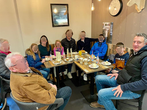Op dag 1 nadat we geland zijn op Schiphol , vinden we het fijn om s'middags naar bakkerij Breimer te gaan en daar gebak en koffie te nemen, kindertjes Fristie en mogen ook uitkiezen wat ze graag willen.