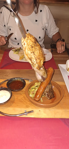 Read more1 ster is nog teveel, eten trekt op niets en daar wacht je dan anderhalf uur op. 2 meiden die bedienen waarvan 1 ronduit onbeschoft was (hier is je bord, het werd nog net niet naar je gegooid) en niets wist. Schnitzel was niet zoals we besteld hadden daar zat ananas op. Toen we er wat van zeiden tegen de bediening; kregen we als antwoord dat het de kok zijn schuld was. Het was niet haar schuld en andere mensen aten het wel zo. De mixt schotel die bijna €50 koste was nog niet de helft waard. (Zie foto onder) 2 miezerige kippenvleugels, 2 hele kleine stukjes varkenshaas, 1 schnitzel die er niet lekker uitzag, 1 spareribs en 2 braadworsten. Toen we vroegen of er iemand was die het wel wist, kwam haar leidinggevende. Die gaf toe dat op de schotel meer vlees had moeten liggen, de schotel zou van de rekening gehaald worden en er zou extra vlees komen; ook zouden we drankjes van het huis krijgen. We gingen akkoord en begonnen te eten, de hele kleine varkenshaasjes waren het enige vlees dat lekker was. De schnitzel die niet besteld was, was zo droog dat je er een schoenzool van kon maken. De persoon die een paar happen van de schnitzel gegeten heeft heeft nu last van zijn maag. De braadworst, die waren niet eens gebraden en waren ronduit walgelijk, dat is nog zacht uitgedrukt.