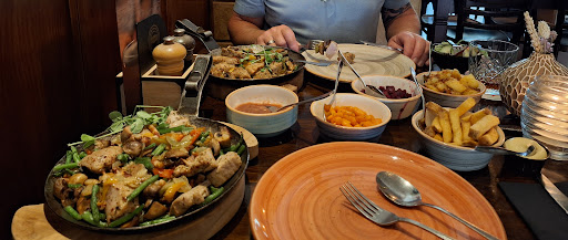Van te voren gebeld om te reserveren, konden alleen nog om 17.15 of 20.15 uur eten. We kozen voor 17.15 uur, er werd toen gelijk gezegd dat we tot 18.45 uur konden eten. We werden vriendelijk ontvangen, waarbij nog wel even werd verteld dat we tot 18.45 uur konden blijven. We kregen een tafel, de kaart en onze drankjes werden opgenomen. Toen onze drankjes kwamen werd meteen gevraagd of we al een keuze hadden kunnen maken, we kozen beide voor een hoofdgerecht. Voordat we ons eerste drankje op hadden (biertje en frisje) stond ons eten al op tafel. Het eten was prima, al was de rib eye wel wat "pezig". Een hoop bijgerechten, waaronder een heerlijke rabarber (4 soorten groenten + salades, gebakken aardappelen + friet). Tijdens de maaltijd is ons keurig gevraagd of alles naar wens was. Echter toen ons eerste drankje op was moesten we veel moeite doen om aandacht te trekken voor een nieuw drankje. Ondertussen was de zaak al behoorlijk vol gelopen. Er kwam een serveerster langs om mijn lege flesje op te halen en mijn man vroeg of hij nog een drankje kon krijgen. Hier werd wat verbaasd op gereageerd, wellicht begreep de serveerster hem niet goed, maar voor ons voelde het allemaal erg gehaast. Het was een soort "en door" ervaring. Het dessert hebben we dan ook maar overgeslagen. Maar de mensen aan de tafel naast ons kregen te horen "dat ze mooi op tijd klaar waren en een toetje nog wel kon". Als wij ergens gaan eten willen we rustig kunnen eten en genieten van de maaltijd, niet het idee hebben dat we opgejaagd worden. Natuurlijk werd bij het reserveren al duidelijk aangegeven dat we een bepaald "tijdvak" hadden en hier gingen we mee akkoord, maar dat dit ter plekke zo duidelijk voelbaar was dat je voor je gevoel gehaast moest eten, vonden wij erg jammer. Wij hadden namelijk positieve verhalen gehoord over dit restaurant en de mensen naast ons waren ook erg positief. Het was een mooi ingericht restaurant, het zag er netjes uit, personeel was erg vriendelijk, eigenlijk weinig tot niks op aan te merken alleen heel erg het "fast food" gevoel. Ontspannen tafelen zit er hier niet in op een zaterdag avond, wellicht op een andere...