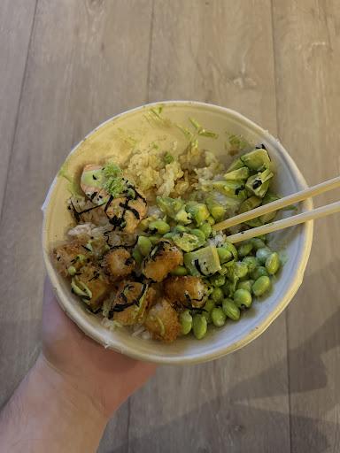 Verder was de rijst van de poke bowl heel erg droog en zat het zo erg vastgeplakt aan de bodem van de bowl dat de helft nauwelijks eetbaar was. Ook de avocado was...