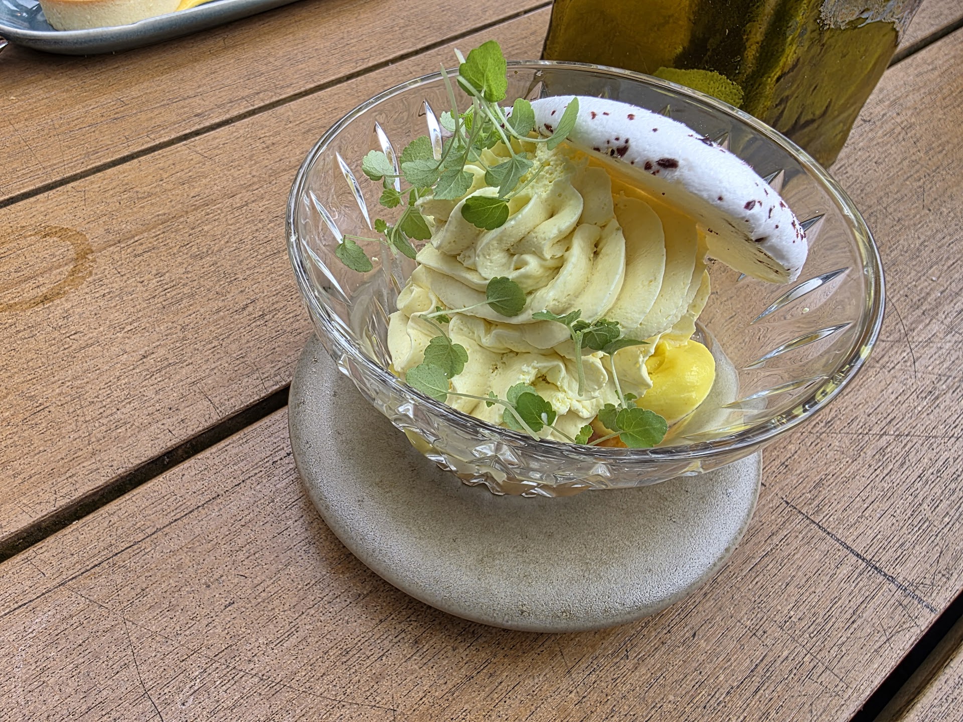 The chocolate mouse is bad. Serve it in a glass at least... Not like a poo emoji on a plate with vegan meringue. Just use normal meringue? The vegan stuff tastes off. Too sweet, like crystal sugar.