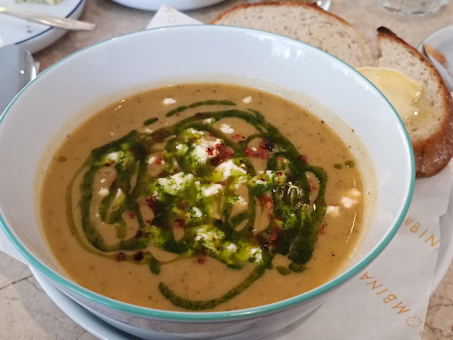 My wife, brother-in-law and sister-in-law are traveling from the US. We ate lunch at Bombina earlier today. In one simple word, it was "perfect." The food and desserts were so delicious. I had the Bulgar salad with lemon vinaigrette and it was the best salad I've ever eaten. We also ate eggplant lasagna, fried chicken sandwich and a chicken salad. All of the dishes were wonderful. Then, we had dessert. We shared rice pudding, carrot cake, lemon poppy seed cake and cheesecake. They were all phenomenal but the rice pudding was the best we've ever tasted. It was creamy and tasted so good but the ultimate was that it had a Creme Brulee top with cinnamon to finish the masterpiece. The carrot cake was the perfect mix of icing and cake and the lemon poppy seed cake was so fresh and light. Lastly, the cheesecake was light and velvety smooth. All of the food was well presented and the service was exceptional. We recommend this restaurant...