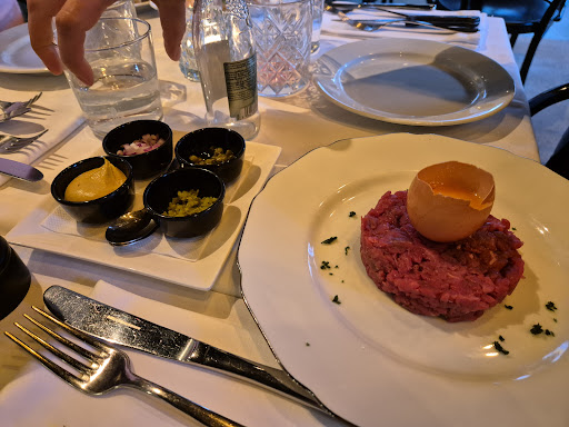 The menu had enough bistro classics to satisfy this Frenchy, and the cooking was en pointe. We ate steak tartare and saumon fumé for starters, both of which were subtle, perfectly textured and good portions. For mains we had moules-frites from the regular menu and rack of lamb from that day's specials. Both were exceptional. The cooking on the lamb was some of the best I have had in years, absolutely perfectly pink, as ordered, and super tender. It was a really thoughtful plate of food with lovely trimmings, higher in flavour-complexity and skillful craft than suggested in the price tag.