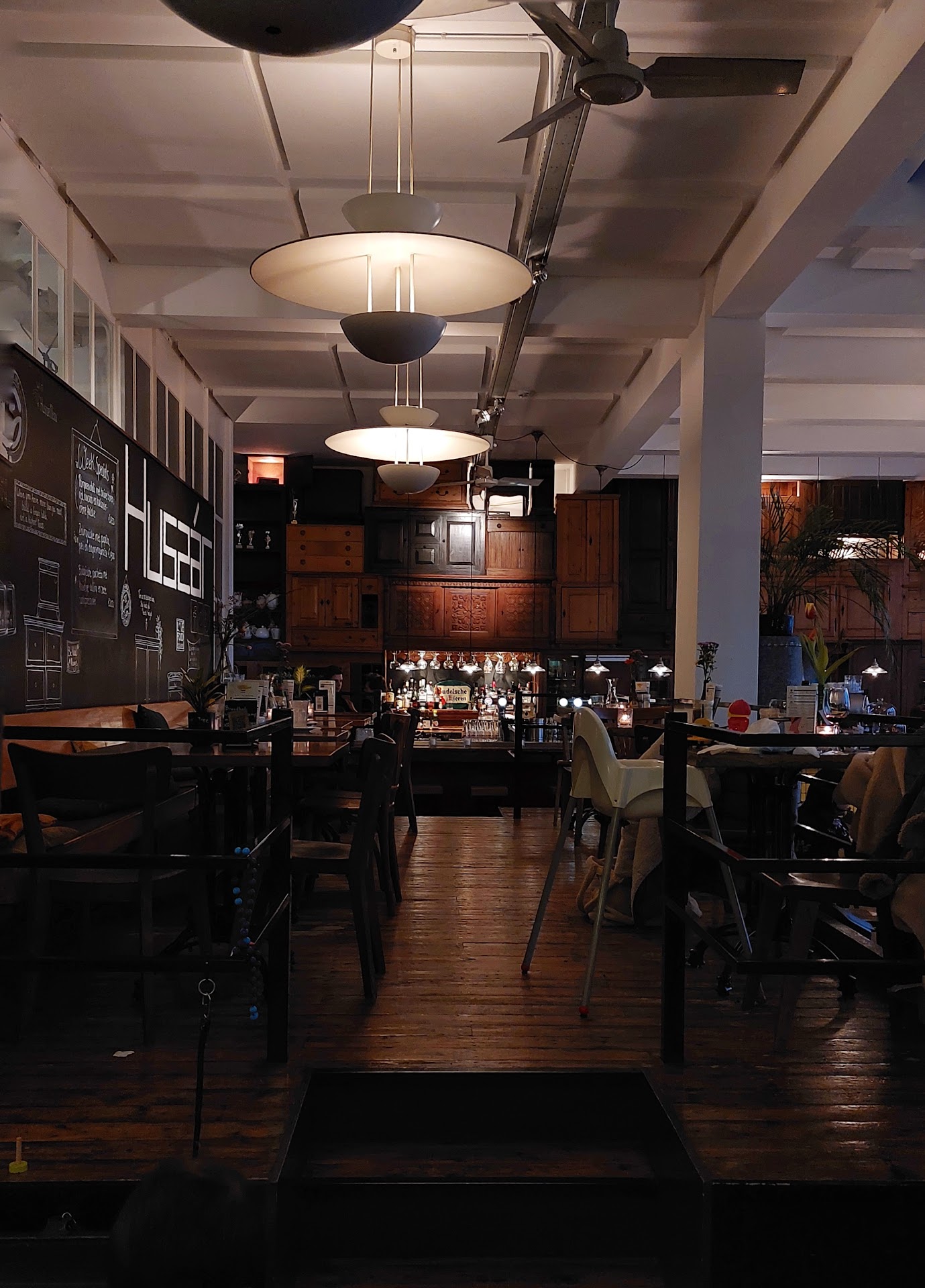 This place has a great interior and is super child friendly. There is a whole corner for kids and changing station with spare diapers and wipes if you forget — so handy. The menu is varied and has options for meat eaters and vegetarians. There are a billion beers and three wines, but I guess that's just the way it is. The white wine I had was nice, so I can't complain there.