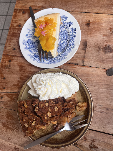 Food: The coffees were delicious, with the staff knowing their beans and being able to advise you on your choice. Additionally they have a few more creative drinks suck as London Fog, which is hard to find in The Netherlands. They also had quite a few tea options on the menu! The choice of cake was also very broad, and the ones that we had were quite delicious! Definitely worth coming back to try the other options.