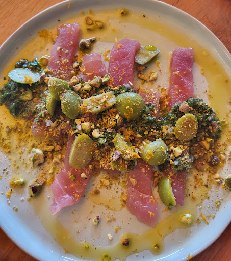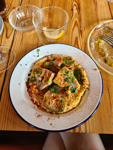Read moreGreat atmosphere and delicious food! We had dinner as a large group (7 people) and I really appreciate that they could reserve enough tables for us despite the limited space they had, and not to mention that it was packed full on a Wednesday evening. The staff was also very friendly, and they did their best to bring our food as quick as possible. We had the pita with labneh, sourdough bread with aioli and patatas bravas to share. The bread was very fresh and tasty! You could tell they use good quality products because the olive oil, manchego cheese and the green olives were also some of the best I had in a restaurant in Delft. I wish the aioli had more garlic in it though. I ordered artichokes with kidney bean puree, I thought it was fine. A bit spicy and the artichokes weren't as flavorful as I hoped. They also have a large selection of wines, Pecorino is a good dry white option. I think patatas bravas was the highlight of the evening for everyone, but I'll definitely visit again to try out some of their seafood!!