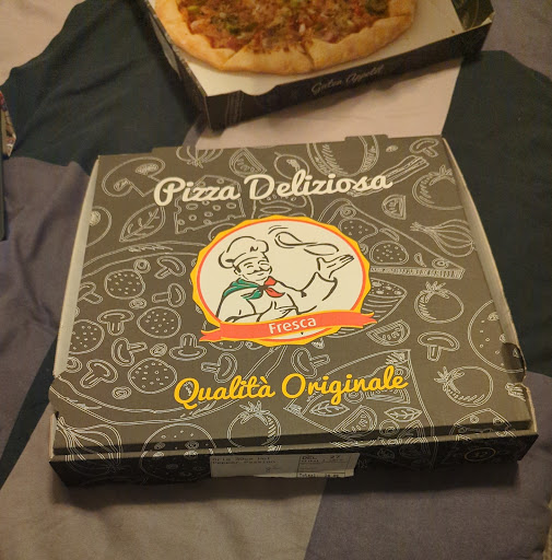 At this time I was really hungry and just wanted food, so I forced myself to another restaurant. When I come back, my roommate tells me that the delivery guy came around 21:20 and that the food is in the kitchen. I see 2 pizzas but no Pepsi.