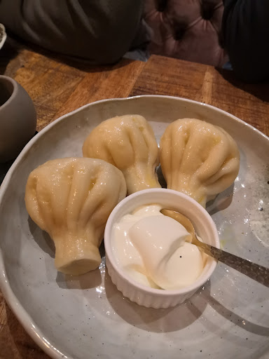 The Georgian dumplings were tasty and well executed (not my first encounter), however the price does not make sense. Reminds me of how tacos are priced in most of Europe. In the case of Mexican food there are specialty ingredients which explain this (the cheese, proper corn tortillas, for example). Dumplings being flower and meat, do not seem to warrant such foreign food inflation. I could easily see a portion size of double what is offered. I would be disappointed to go in by myself and pay 17 euros for three dumplings and leave hungry.