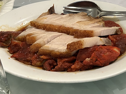 The food didn’t taste good and were quite expensive. Evening dishes were at least 23euro each and with meat it was around 30euro. But the quality was really lacking, like the roasted pork belly. It was not crunchy at all and it was thinly sliced with a lot of fat. The char siu tasted light, almost without taste and was marinated with too much red powder. And other dishes tasted too salty, except the boiled chicken, which was boiled just right and it was tasty with salted ginger sauce since you can decide how much you can put on it.
