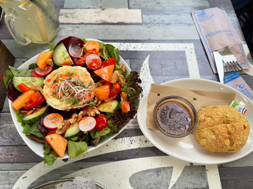 The burger was absolutely delicious â juicy and full of flavor. The sweet goat salad was also really delicious. The Salmon Surprise, while beautifully presented and very artistic, didnât quite hit the mark for us; it felt a bit too dense and heavy.