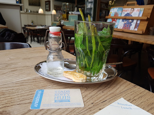 The printed menus are in Dutch, but you can easily scan a QR code to access the English menu, and there is a big selection of items to choose from. I ordered the fresh ginger and mint tea, which came with a side of Delftse elderflower syrup â really delicious and refreshing. My husband had the homemade lemonade and loved it as well.