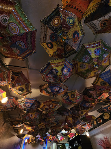 In principle, the atmosphere was good.. the tables, the colorful reversed umbrellas covering the lights on the ceiling.. the wallpaper with dishes.. nice. We were the only customers though (surprisingly so on Saturday evening prime time); not very lively. The woman serving us was kind and asked where we came from - Texel but we live in Amsterdam... and if there are any Indian restaurants in Amsterdam...(#@$??) ..eh.. yes there are :-) We didn't look at the menu but ordered chicken rogan josh and because chicken saag was not something she/they were familiar with (!?) I told her that we'll have chicken danzak because I thought - as I told her - it had spinach in it as well. No idea why I thought so - because it doesn't .. but unfortunately she didn't correct me at that moment.. so when food was served she said "the danzak doesn't have spinach.. you thought it had spinach in it".. which obviously is not very customer friendly since it is stated after serving it. I wonder why the cook didn't level this with her when she forwarded the orders - knowing what we wanted - so she could come back to suggest an alternative or 2 confirm if it's still what we want. We were too hungry to let such thoughts play a part since food was already served at that point and we were hungry. I did ask to go easy on the spiciness (rogan josh is supposed to be spicy) but even so, here it was waaaaaay too spicy. The danzak on the other hand had waaaay too much sugar in it...and pineapple. The garlic naan was - as others commented also - spread with garlic paste (!) and I found that cheap, disgusting and unacceptable. She retorted that I knew what I was ordering. That came off as impolite. We ate because we were hungry but we couldn't enjoy it at all. At the end the waitress was kind enough to ask if we enjoyed the food so I decided to be honest and direct and say what I thought of the food (not very good or enjoyable) and credit to her for coming back later saying she told the cook because I hope for innocent walk-ins, that they show a willingness to improve themselves. For 2 not so well prepared dishes.. - not doing anything with expressed wishes - 1xtra rice, a disgusting garlic naan and 2 tonic drinks costing âŹ57 in total.. it's clearly overprized. Even in a touristic city like Amsterdam they don't dare to ask these prizes yet offering better quality. Impossible...