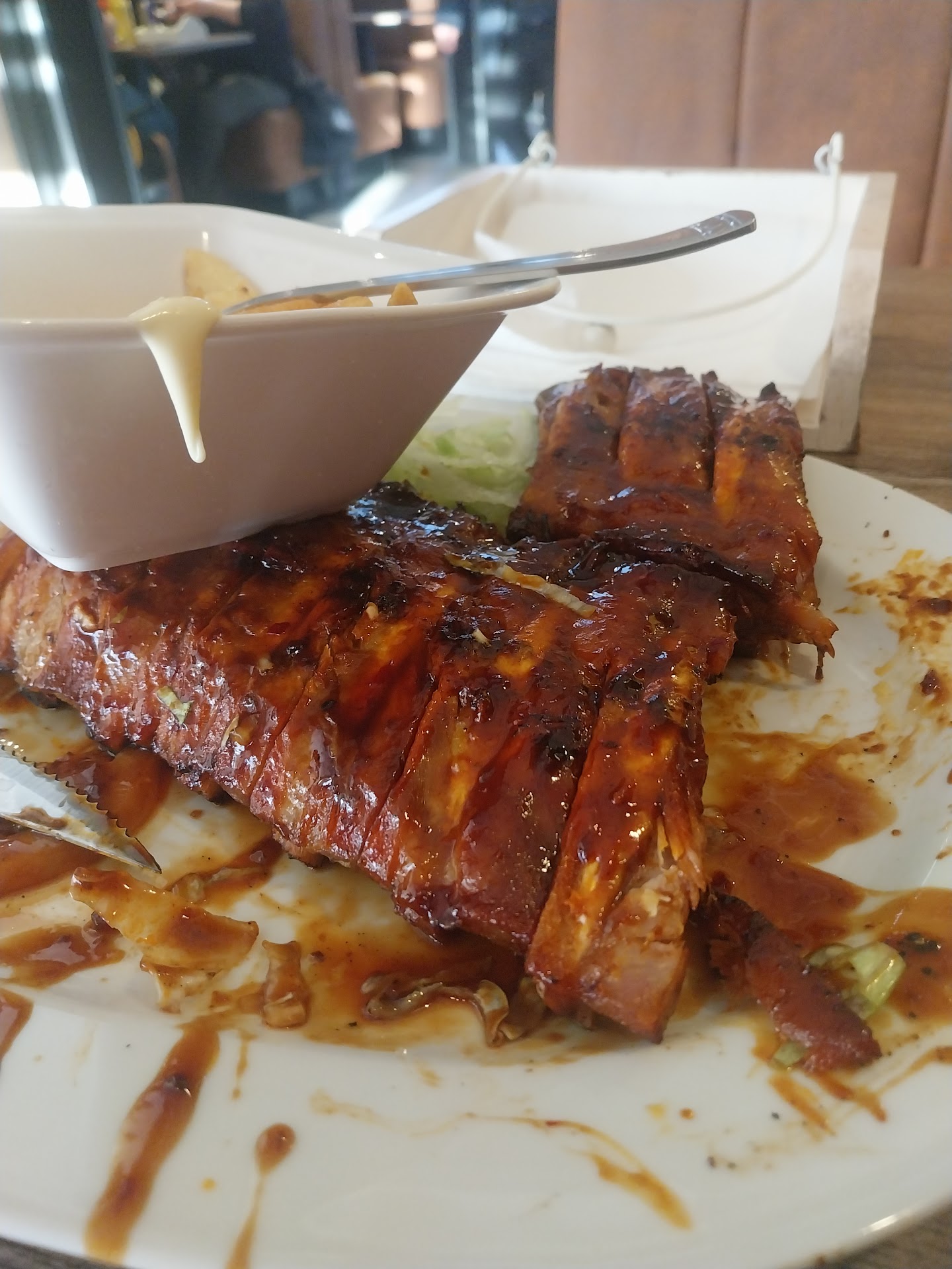 the worst ribs I've ever eaten, if the bones I got can be called ribs (not to mention the stinking smell of this dish). On the minus side, there's no soap in the toilets, both women's and men's (so its absence is no coincidence). The dishes for customers are practically resting by the toilet door. The owner, seeing my dissatisfaction, didn't charge for the meal, which is a plus, but that's all from the...