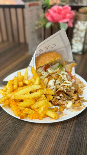Whopping 5 stars for everything at this restaurant ive had everything and theyre doner meat and lamb shoarma are soo good i had a doner sandwich this time with a side of fries it was amazing atmosphere was so fun and the music playing was such a vibe !! . service was super nice especialy a guy called karlos...