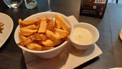 Read moreVorige week in het kloosterhotel geweest en de eerste avond hier a la carte gegeten. Bijzonder was, in eerste instantie, al de bediening. Enthousiast, spontaan en op een leuke manier niet op hun mondje gevallen. Mijn vrouw had de Halloumi salade en ik de entrecote. (Rare) De serveerster moest lachen toen ik een jonge borrel bestelde. Sorry ik heb geen pokerface, maar meestal bestelt men die bij hapjes. Het ijs was gebroken. De salade was heerlijk. Mijn entrecote ook. De bijgeleverde garnituren waren ook heel goed. De tweede avond hadden we een voucher voor een driegangenmenu. Ook hier was de bediening ook weer heerlijk bijdehante ober. Geboren voor de horeca. Hij schonk aan tafel een goede borrel met kop er op. Vooraf pomodorisoep en Thaise curry soep. Hoofdgerecht sate Bali en fish and chips. Nagerecht beiden dame blanche. Alles was perfect en prima van smaak. Porties ruim voldoende en genieten van de sfeer die bediening schept. Dit alles was zo goed bevallen, dat we de derde avond hier ook zijn blijven eten. Ribs en wings en Ceasar salade. Deze avond waren beide jongelui van de vorige avonden er allebei. Hé zijn jullie er weer. Gezellig. Op het eten was weer niets op aan te merken. Onze tip ben je in het kloosterhotel sla...