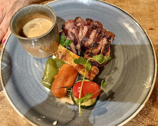 As soon as we arrived, I saw that they had prepared a beautifully decorated table just for us, with balloons, candles, and lovely little touches. My wife was genuinely surprised and moved. We were welcomed with a delicious cocktail, followed by an exciting starter served with fresh, tasty bread. The highlight of the evening was the incredibly flavorful and tender meat served as the main course â absolutely outstanding.