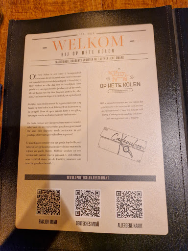 Read moreWij hadden nog nooit gehoord van Restaurant Op Hete Kolen. We werden naar binnen getrokken door de heerlijke geur die er uit het restaurant kwam en de gezelligheid die het uitstraalde. We hadden niet gereserveerd, maar werden toch al snel naar een fijne tafel begeleid. We werden verrast door de variatie in aanbod aan gerechten en speciaal biertjes. Wat is het een feestje om hier te gast te mogen zijn. Wij kozen voor de Tournedos en de Picanha. Na de eerste hap kregen we al direct een glimlach op ons gezicht. Wat een fantastische smaak sensatie. Van begin tot eind gewoon genieten. Wij hebben na deze ervaring een nieuw lievelings restaurant waar we voortaan ons lekker stukje vlees komen eten. Op Hete Kolen is zeker een aanrader en wij komen heel graag nog eens terug.