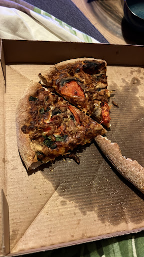 Hier blijft het alleen niet bij: op mijn pizza waren de vegetarische kipstukjes taai (wat nogal jammer is bij een “pizza veggi chicken supreme”). Daarnaast kreeg mijn vriendin een paar uur na het eten van haar pizza (caprese) de verschijnselen van voedselvergiftiging en lag ook vandaag de hele dag plat. Dit kan toeval zijn, maar ze is nooit zo ziek en na alles wat er al is misgegaan in dit filiaal… Kortom:...