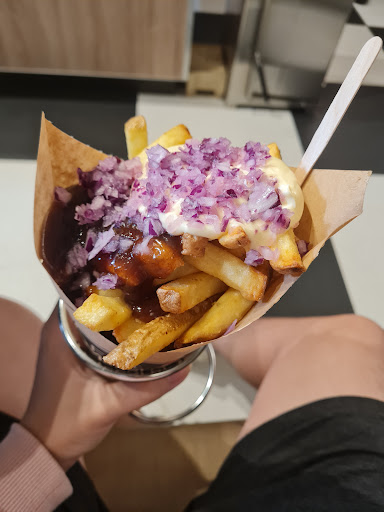 Read moreHeerlijke frites! en bij het weggaan zijn ze heel hartelijk, maar bij binnenkomst heb ik me telkens niet welkom gevoeld. Alsof mijn komst als stressvol wordt ervaren. Het proces oogt niet vloeiend. Alsof ze bij elke bestelling nog moeten bepalen wie wat gaat doen. Ik moet altijd heel lang wachten tot ik aan de beurt ben om überhaupt mijn bestelling door te geven. Het is veel minder erg om lang te wachten als je de bestelling tenminste alvast heb mogen doorgeven. Maar ze willen telkens eerst alle staande bestellingen afwerken alvorens een rij nieuwe op te nemen. Alhoewel ik het wel veel minder erg zou vinden om lang te wachten als ze ons op z'n minst een keer aan zouden kijken bij binnenkomst, maar je wordt helemaal genegeerd tot je mag bestellen. Altijd als ik daar kom staat de frietmeester frites te snijden. Staat wel leuk, maar kan dat niet beter van te voren? Het gaat langzaam. Ze sluiten te vroeg (18:30 al!), daardoor wordt het wel erg druk rond etenstijd.