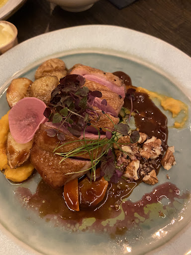 Read moreNacho’s vooraf gedeeld, lekkere guacamole, tomatensalsa, en crème fraiche.. onderop vond je ook nog chili saus.. sommige reviews zeiden dat het te zoet was, chili saus is zoet zuur.. dus misschien viel het toch wel mee! De eend was heerlijk klaar gemaakt, precies rode zoals ie hoort. Ja.. je krijgt er 4 halve aardappels bij geserveerd en wat groenten, dit kan je weinig vinden maar als je goed leest en je meer bijlage wilt dan kan je dat altijd bij bestellen… Het dessert de cheesecake was prima, niet heel bijzonder maar er hoeft ook niet bij een bistro. Mooie sfeervolle ingerichte zaak. De gastheer was erg vriendelijk, de lange jongeman van de bediening die heeft het begrepen… staat niet stil, maar poetst bij elk moment van rust.. De kok….. kookt goed, maar mag wel leren om wat minder voorover te hangen en op zijn telefoon te kijken als ie het even rustig heeft. Dit is voor de klant niet perse een veelbelovend uitzicht, terwijl ie toch goed kan koken. En natuurlijk ook niet erg hygiënisch om op je telefoon te gaan zitten terwijl je aan het koken bent. Maar goed, meer te zeuren hebben wij niet, het was een fijne lekkere ervaring met prima eten. Helaas heb ik van de nacho’s geen foto gemaakt anders kon je goed zien dat deze bij ons niet doordrenkt waren! De 4 sterren voor de sfeer komt puur door het verkeerde uitzicht op de kok.. dit kan natuurlijk altijd...