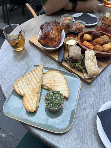 Read moreWe ordered the Iced tea peach, the borrel plateau and the french tosti. The service was really polite and the drinks got served fast, but we had to wait quite a while for the food. The french tosti was nice, but a little bit dry around the crusts since the brie wasnât properly spread. Pesto was nice. The borrel plateau consisted of nachos with guac and salsa, spareribs, chicken wings, two burgers, bittergarnituur, salad and sauces. The salad was bad and the spareribs were nice, but werenât marinated properly. Everything...