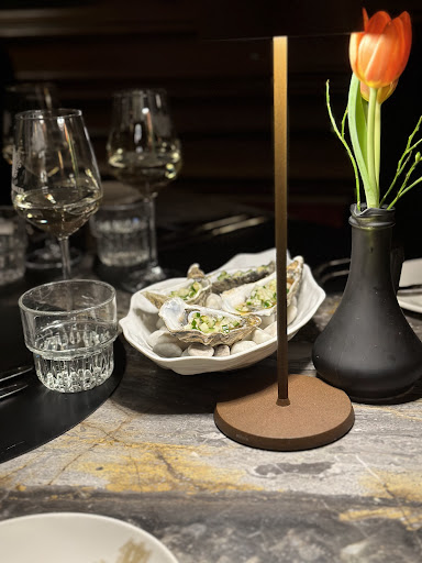 Het restaurant Daar de weergoden ons gunstig gestemd waren was het mogelijk om in de sfeervolle binnentuin te genieten van wat komen zal gaan. Onze ober ( Sander ) bracht ons alvast even op de hoogte dat hij vanavond alleen in de bediening was. En dan kom ik meteen bij het eerste compliment want Sander is het schoolvoorbeeld van de professionele ober. Super vriendelijk, attent, snel, humorvol en vooral zeer zeer klantvriendelijk. De prefecte gastheer.