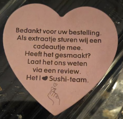 De slechtste sushi wat ik ooit gegeten heb! De Ebi salmon roll leek helemaal niet op de beschrijving en foto op de website van I love sushi : "Garnalen, avocado en geflambeerde zalm on top". Zie foto de zalm was niet eens geflambeerd en de rijst was droog! De gratis roll (naar keuze bij besteding vanaf 20 euro) Ebi Tempura 4 stukjes in plaats van 8 : droge rijst en kale bedoeling. De Torikatsu gefrituurde kipfilet : paar stukjes droge kip! De shashimi zalm was veel te dik gesneden en te vet. Zonde van je geld! Niet voor herhaling vatbaar!