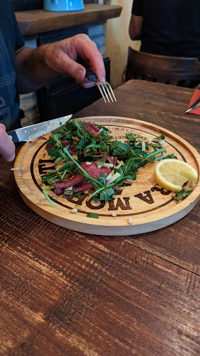 Zoekend naar een pizzeria in Deventer blijk je vooral in de binnenstad te moeten zijn. Wij kiezen op basis van de relatief hoge score (4.2) op Google Maps voor La Cantina. Deze score lijkt ons qua kwaliteit van de gerechten terecht, na er daadwerkelijk (en smakelijk!) gegeten te hebben. Verwacht niets fancy, maar wel prima prijs en best druk en gezellig. Met eenvoudige middelen is het interieur vorm gegeven, enigszins simpel en niet erg smaakvol. Maar het ruikt binnen zalig en op de een of andere manier hangt er wel een quasi Italiaanse sfeer! De bovenverdieping is wat aan de lage kant; ik stoot mijn hoofd hard aan een balk in het (enkele) herentoilet. Dus eten prima, het is schoon, maar voor de rest wat onverzorgd; slechte kwaliteit en verouderd/versleten bestek (ook geen schoon bestek na voorgerecht), met vooral botte messen. Op de kaart zijn opvallend veel gerechten op een liefdeloze wijze met een stift doorgestreept. Desondanks zijn ook meerdere andere gerechten tijdens ons bezoek niet meer te bestellen. Als hieraan wat meer aandacht wordt besteed, gaat de score zeker nog wat...