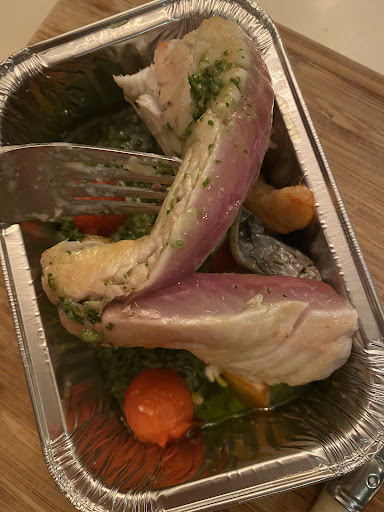 Read moreZwaar onder de verwachting! Al een tijdje wilde ik hier het eten proven maar helaas wat een tegenvaller.. al het eten is zo weer de prullenbak ingegaan. Zalm zou gemarineerd zijn maar het smaakte naar flauwe hap, 1 van de 2 dorade was na 10 minuten in de oven nogsteeds rauw en ik heb überhaupt het idee dat het van die ingevroren filetjes zijn van de Sligro. Nog 15 minuten in de oven gedaan wanneer de rest al lang klaar was. Hier komen wij nooit weer.