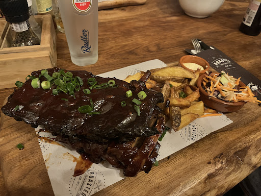Hoewel het personeel echt wel probeerde er nog iets van te maken hebben we vanavond echt een hele slechte ervaring gehad. Ruim van te voren voor 2 personen gereserveerd, maar als we aankomen is er geen tafel beschikbaar. We kunnen aan de bar of buiten. We gingen voor een spefiale gelegenheid en zagen de bar niet zo zitten, dus dan maar buiten. Om half 8 nog best te doen, maar 1,5 uur later was er nog steeds geen tafel vrij en toen was het toch echt behoorlijk afgekoeld. Uiteindelijk om iets voor half 10 toch een tafel binnen, omdat we zelf zagen dat andere mensen vertrokken. Ook bij de drankjes ging het fout, mijn vriend kreeg niet het alcoholvrije bier dat hij had besteld maar een halve liter met alcohol in een ranzig glas. In de 2 uur dat we daar zaten hadden we gelukkig wel ons voorgerecht gekregen, maar zowel de kippenvleugels als de ribs vielen tegen. Hoewel de ribs redelijk makkelijk van het bot kwamen zat er weinig smaak aan. De kippenvleugels hadden iets meer smaak, maar hadden wel wat meer pit gemogen voor "chipotle" wings. Wel mals! Ik vind ruim een uur wachten op een voorgerecht al veels te lang, maar dan vervolgens nog een keer ruim een uur op je hoofdgerecht wachten... het is irritant en doet af aan de sfeer. Zeker als je merkt dat alle andere tafels om je heen ook continue vragen waar het eren blijft en je ondertussen dus overal gemopper hoort. Toen onze hoofdgerechten kwamen waren ze, ondanks dat het dezelfde burgers waren, totaal niet te vergelijken. Mijn stuk kip was droog en zeer krokant, dat van mijn vriend bestond meer uit slap vel dan vlees. De chipotle was nergens terug te vinden en we kregen zoete aardappel friet ipv het gewone friet waar we voor gekozen hadden. Na dik 2 uur hadden we echt geen zin om het eten ook nog eens terug te sturen, maar we hebben wel aangegeven dat het niet was zoals verwacht. Hoewel het personeel echt wel probeerde om iedereen goed te bedienen, en ze ons een drankje en toetje van het huis boden, doet dat niet zoveel als het op werkelijk elk vlak fout gaat. Helaas voor ons echt een domper vanavond en zeker de laatste keer dat we hier...