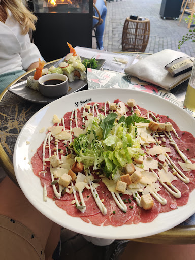 Zonder vooraf gereserveerd te hebben, besloten wij na een tip in St. Maxime te gaan eten. We kregen een tafel aangewezen, waarna we direct een fles water kregen, wat met dit warme weer een welkome extra was. Vervolgens duurt het ruim 30 minuten voordat de bestelling voor het diner opgenomen werd. Met goede verwachtingen bestelde we 2x grote Sushibowl met tonijn, 2x Noedels met Kip, en een steak Tartaar met brioche brood en friet. Toen we het eten geserveerd kregen waren wij redelijk verbaasd: de grote sushibowls, gedacht als maaltijd, waren matig gevuld, de noedels met kip ( voor een prijs van €22 per portie) was echt veel te weinig voor een diner en de tartaar, waarvan de portie ook echt klein te noemen was, werd zonder het ei, het brood en zonder frietjes geserveerd. Al met al was de smaak van het eten lekker,: de kip was goed gekruid en mals, de sushibowl was met de sojasaus en verse tonijn ook lekker, en de tartaar was lekker mals. Echt heel erg jammer de porties zo ontzettend klein zijn, ondanks de prijzen, en dat het zo lang duurde voordat de bestelling werd opgenomen. Ik begrijp dat het kan voorkomen dat door drukte en eventuele personele tekorten het langer kan duren, maar als er tijd is om lege tafels opnieuw in te dekken, dan is er ook tijd om de aanwezige gasten eerder...