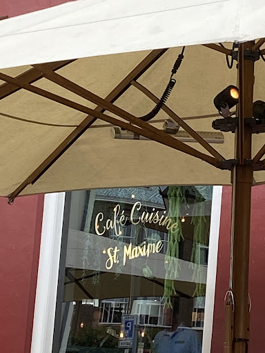 Read moreNa er een nachtje over te hebben geslapen en na overleg met de tafelgenoten dan tóch maar een objectieve maar helaas weinig positieve review geplaatst. Ook St. Maxime blijkt de trend te volgen om een stevige prijs te vragen voor een uitgekleed gerecht. Als je een poussin (piepkuiken) bestelt wat bekend staat als een delicatesse en waar volgens de kaart seizoensgroenten bij zouden zitten, dan sta je toch wat raar te kijken als er een klein gebraden kippetje op een bord ligt met een achttal blokjes die lijken op knolselderij en nog iets, met een klein kannetje saus/jus. Nee, daar komen verder geen groenten bij, en op geen enkele manier was te proeven dat dit krielkuiken een andere behandeling had gehad dan te zijn gegaard in een ovenschaal. Dat kost dan maar liefst €24,50. Voor wat plakjes eendenborst, moeilijk te snijden, zonder noemenswaardige bijproducten, mag €27,50 worden neergeteld.